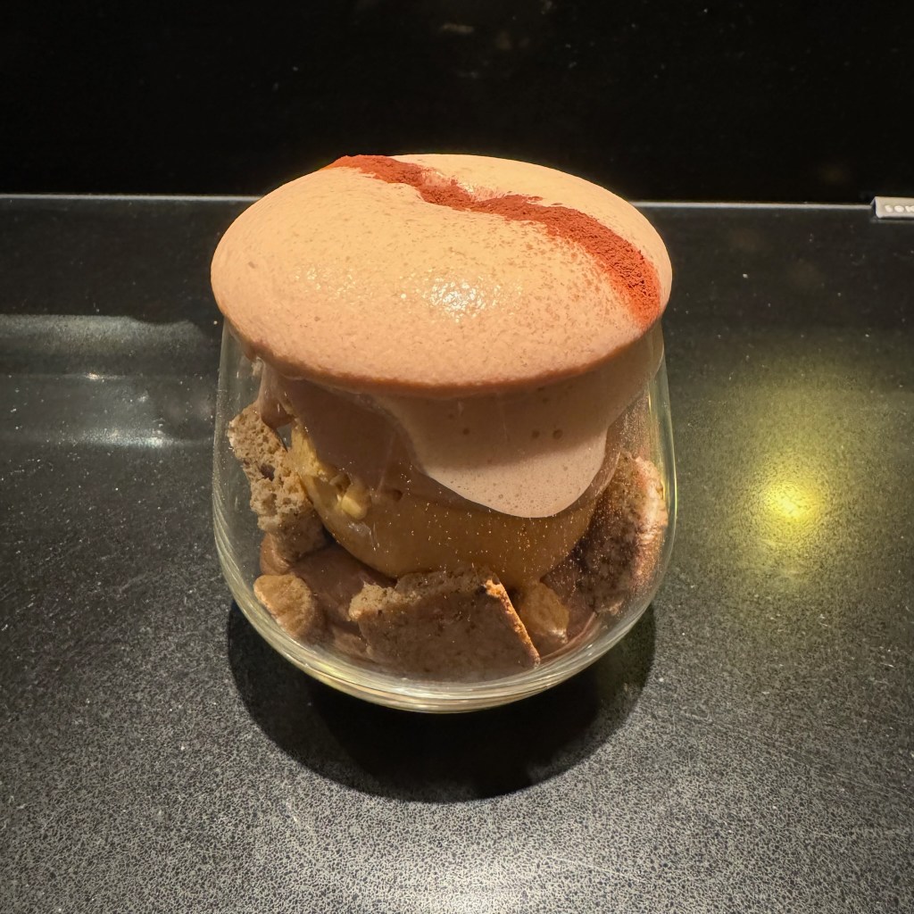 We finish with a dessert called caramel macchiato. It differs from the lighter desserts typically found in omakase menus, and may come across as richer and sweeter than expected.